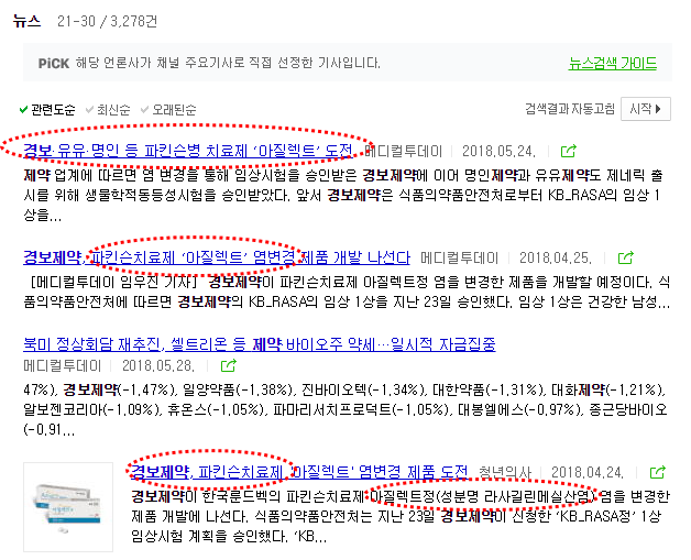뭔가 파킨슨병 관련 치료제에 대해서 경보제약이 진행하고 있는 사항이 있을 것은 생각이 든다.