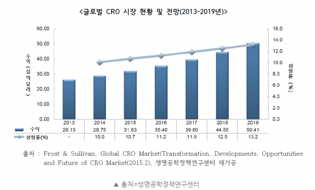 신약을 개발하려는 다국적제약사들과 임상3상에 도전하는 국내제약사들이 늘어나고 있으며, 신약개발에 대한 비용절감과 효율화를 위한 방편으로 점차 성장하고 있다.