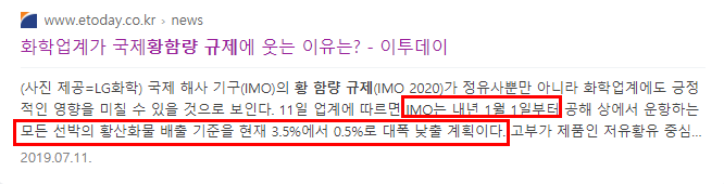 1. 석유값 하락으로 중유, 벙커C유 가격이 싸졌다.