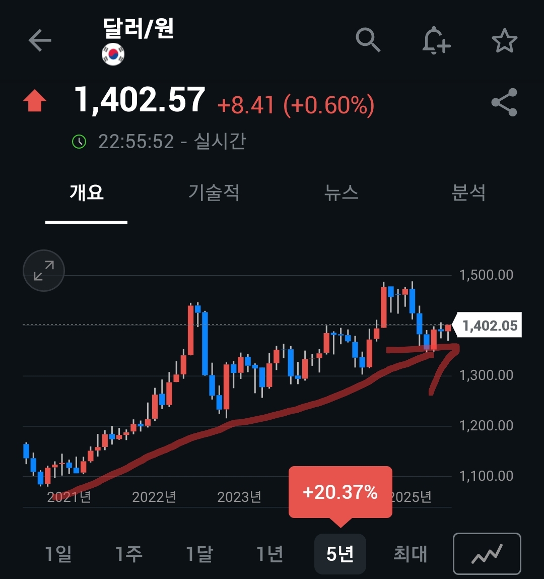 거기다가 이젠 은행을 통하지않고 스테이블코인으로 자금 이동을 할 경우 원화의 가치는 장지적으로 점진적인 왼만한 하락을 보이지 않을까