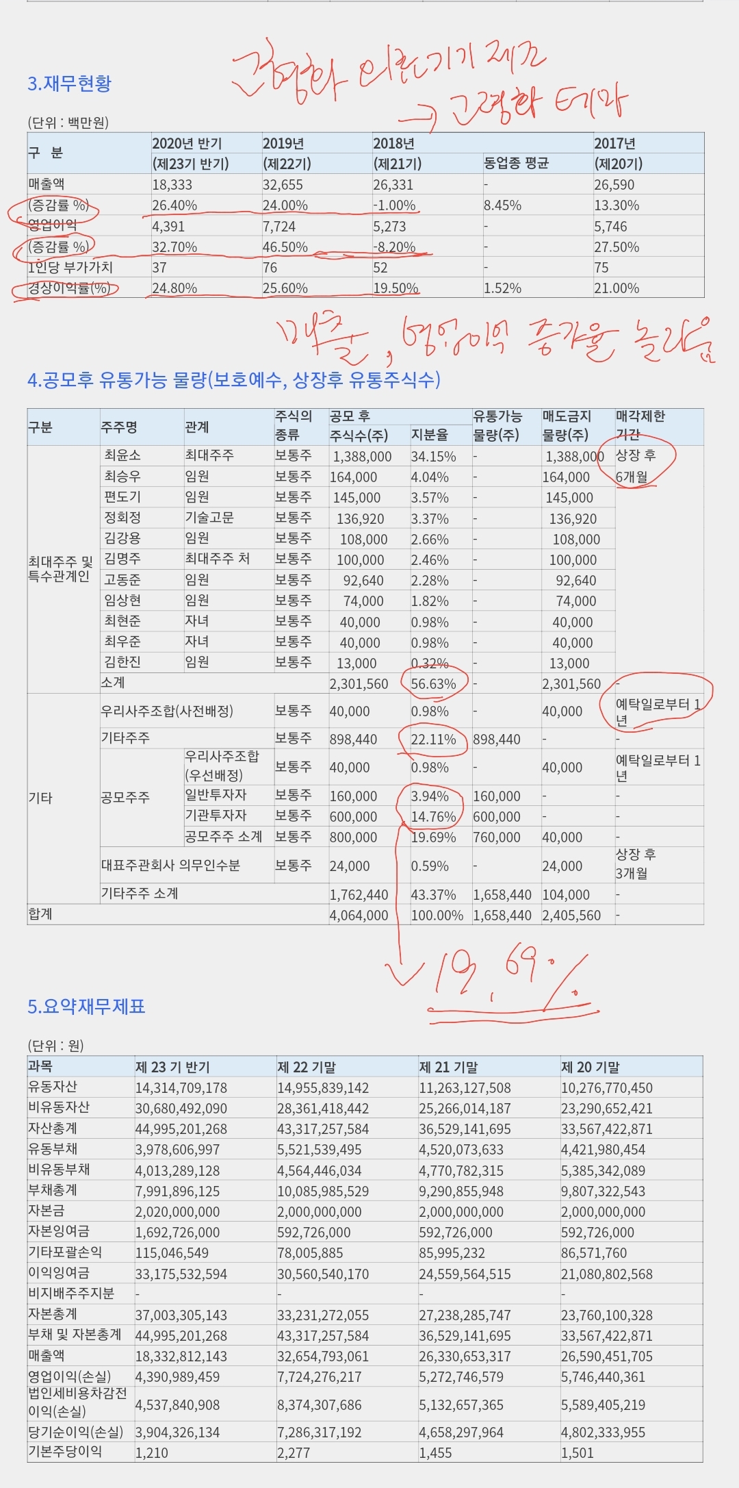상장하면 전체 100% 물량중 19.69% (개인3.94%/ 기관 14.76%) 만이 풀릴 예정으로 보인다.