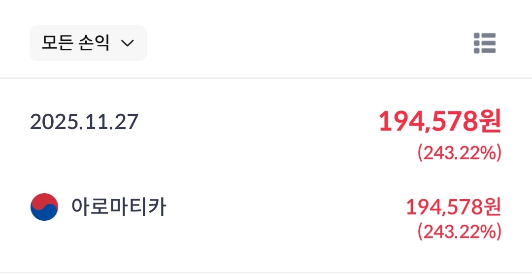 - 아로마티카: 194,578원 (243.22%) / 신한