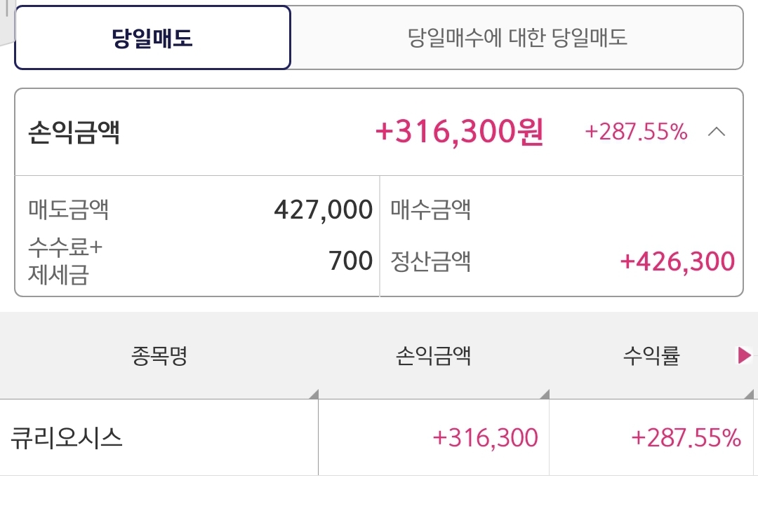 - 큐리오시스: 316,300원 (287.55%) / 키움