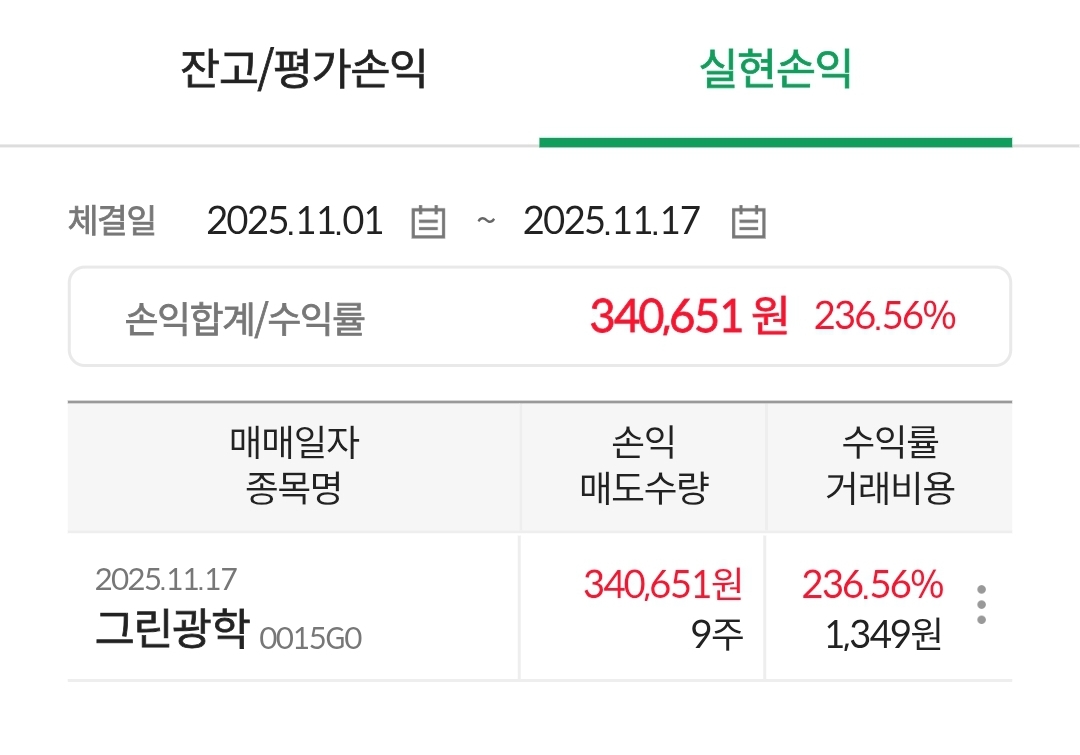 11월 수익과 합계를 해보면 총 10,973,350원 수익이 발생했다.